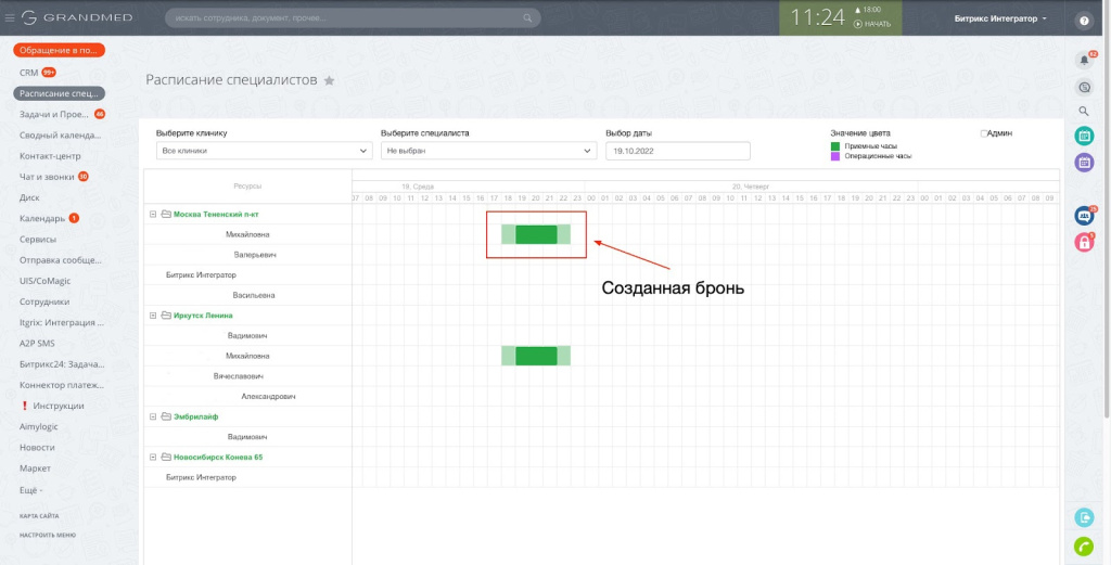 Для реализации проекта было выбрано решение Битрикс24 с модулем «Бронирование ресурсов». Система была адаптирована под специфические потребности медицинского учреждения.