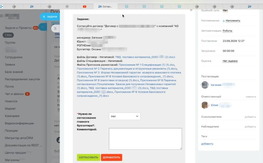 CRM стала полноценным инструментом управления проектами. Контроль силами сотрудников заменили автоматические проверки и уведомления, а документооборот стал прозрачным и независимым от человеческого фактора.