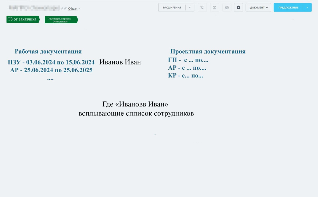 После внесенных изменений у архитектурного бюро исчезла путаница с договорами и версиями файлов. Все участники процесса видят, где находится документ, кто его согласовал и на каком он этапе. Финансовая часть и календарь теперь работают в одной логике: платежи, этапы и задачи связаны между собой. Руководитель проекта может открыть карточку и сразу увидеть — что сделано, что оплачено и кто отвечает за следующий шаг.