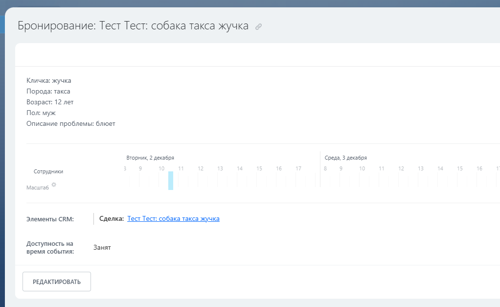После внесенных изменений расписание и запись на прием стали удобнее. Битрикс24 в этой конфигурации используется как полноценная CRM для ветклиники.